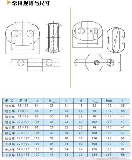 礦用圓環鏈用開口式連接環22×86 C 試驗負荷:415kN。試驗負荷下最大伸長率:≤2 ;% ;。最小破斷負荷:≥550kN。破斷后永久伸長率:≥ 8 ;% ;。脈動負荷范圍(kN):下限38 上限190。最小脈動循環次數:40000。